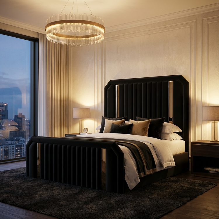 Luxurious vertical panel detailing paired with a sculpted silhouette and premium fabrics creates a bold, designer-inspired look seen in trending 2025 interiors.